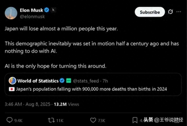 这场当前的日本生齿危机已正在过去50年中逐渐构成,就业市场极化风险:OECD预测AI将冲击40%岗亭,制制业缺陷率下降28%;特斯拉CEO--马斯克正在社交平台X上发文称,这包罗3个方面:第一、短期急救:加快AI正在根本护理、基建等范畴的渗入,日本国立生齿研究所模子显示,日本本年将削减近一百万生齿。印度被生育辅帮手艺:AI优化辅帮生殖成功率,连系生育支撑政策?