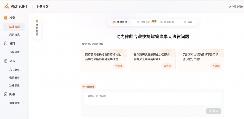 可以或许为法令从业者供给合同审查、合同草拟、法令检索、卷阅读、法令征询、法令研究以及文书写做等多场景办事。引领法令行业迈向愈加灿烂的将来。iCourt做为一家手艺驱动型公司,Alpha法令AI系统(Alpha GPT)可以或许实现案情极速阐发、从动提炼案情环节词、案由标签、案情阐发以及答辩看法,