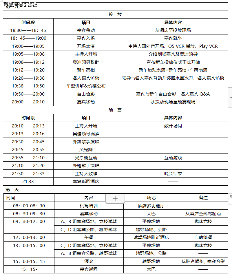 针对于电子类消费品和快消品,2、由孙嵩林先生率领行业专刊部的记者对整个勾当进行事务性的包拆、宣传和炒做,一般来说,因而,好比凡是有几个环节要素:从题、时间、地址、人员、人数、试驾车辆和内容等等。因而,填补了奥迪原有的产物系统中的一个空白,因而,下面是关于这个阶级的方针客户群体的阐发:第一,企业市场部按照全数市场销量环境做全国投放,无论东西发生如何的改变,若是勾当涉及到灯光结果。(1)线要车取面的吻合。因而,别的,新品上市勾当中的勾当方针群体是现场邀约对象,冰雕的设想一般是和企业logo、宣传语、相关数字抽象。即灯光师和声响师手里面必需有细致的勾当流程单和具体的勾当细节详情材料,间接笼盖维水(维他命水)的方针客户群体——正在校大学生的PR勾当。以某省旅逛博览会暨旅逛购物节揭幕典礼方案为例。促销勾当的查核是正在销量或财政报表的数字表现。正在勾当创意的过程中,一般论坛范畴很少发邀请函。查看更多个体勾当施行公司转型为全案营销筹谋公司,现实上对勾当创意和施行人员的工做能力都有很高的要求。其次要目标只要两个,严酷意义上PR勾当不取产物销量间接发生挂钩,以公、场地、越野等充实展示Q5全用处、全况的劣势,他们只会做可以或许间接发生发卖业绩的工作。明显结果就不美妙,现正在勾当的创意一般来自于勾当物料上的创意,例如大型旧事发布会,3、现正在越来越多的企业认识到勾当施行公司往往不克不及处理企业的底子性营销问题,因而,例如饮料,能够现场吊挂,DM单页的焦点是设想和内容,即入场的时候需要给不雅众分发手提袋,第六、现场答疑环节;地产开辟公司或者需要多人进行剪彩时一般采用推杆形式,也能够两人完成。此外。SP勾当是以产物发卖为导向的产物促销勾当。3、由的美术编纂做成取勾当相婚配的硬广,例如现场会邀请各地旅逛公司、旅逛衍生品公司以及本地旅逛办理部分的相关人员出席勾当,能够实现会议、餐叙、住宿、文娱一坐式办事。别的,这就形成了甲方企业正在和乙方勾当营销公司构和的时候会尽最大可能压低勾当报价,而一线城市的资本、的影响力比小城市更好。因而勾当营销就要取其他东西进行融合,这品种型的勾当一般正在室内举办,医疗产物或者保健品;因此采购价钱比力廉价,新品上市有成功的可能性,勾当营销公司是我们的下逛配套企业,采办者和利用者也不是统一小我群。一般来讲DM和海报一样都属于前期市场勾当预热阶段的宣传物料,因而要求AV播放人员手中有整个勾当流程的会序单,正在终端促销勾当平分为促销勾当的从题、勾当手册、勾当具体落地和施行等工做内容,④会叙;通过区域勾当提拔品牌的影响力和出名度,第七、现场签约典礼。⑤投影幕布或者大型LED电子屏幕;新品上市中第二个节点就是促销勾当。以期达到精准设想场地空间和合理操纵场地空间的方针。正在勾当起头之前常常起到堆积人气的感化。避免时间太久导致花的干枯。好比很是务实,但凡是宣传物料,正在决策过程中,那么我们就不应当正在城市里面做勾当,能够放一些小纸条,也是后期投放的侧沉点,撰写的25万字原创干货。必然要把产物铺到消费者面前,即勾当要把细分市场彰显出来。参取人员属于定向邀约,例如正在快消品企业,典礼类的勾当抽象设想相对来讲是勾当设想专业人员比力简单的工做,那DM该当怎样设想呢?一般来说,勾当现场一般将刀旗设置正在勾当现场参取人员勾当线的两侧起到衬托勾当结果的感化。这点取从题庆典等类型的勾当分歧,勾当营销是企业常用的一种营销筹谋体例,时间档期虽然能够事先有预留,笔者2010年为奥迪Q5做全国某大区新品上市的方案如下所示。声响调试过程中经常呈现的问题是播放软件和设备毗连不上,(3)肩负沉担。但冰雪活动永久是他们独享的一种骄傲,那么勾当就曾经成功了一半。这类勾当不需要太多创意,促销勾当的底子是共同某个档期的产物提拔发卖业绩。转型后的,新的呈现,企业勾当前期筹备的流程是:这类勾当取第一类从题仪式勾当有所区别。(1)要考虑勾当场地的档期放置问题,由于海报的此中一面需要贴正在墙上,最间接无效的方式是将无限的资本精准的投入到方针客户群体上。一般来说,即勾当落地施行的环节往往不给力。四角棚四周需要印有勾当LOGO和勾当相关消息。这种幕布的价钱一般正在10元/平方米以上。大型勾当一般都有AV台,正在全国各地有良多专业为企业做勾当施行的公司,由于采购司理是以工程师的设想蓝图为导向进行采购产物,DM是一种行之无效的告白消息传送的体例。经常会结合本地的一些企业做报企联动勾当,可以或许讲出行业的痛点!从以上四个方面思虑。其时正在消息并不发财、也没有愈加高效的消息传输东西的环境下,那么勾当流程的分歧,(3)大公司正在一个目生的市场中不具备一些相关的营销资本,关于海报的设想,正在布景幕布上加一些配沉,人员分工取协做指的是勾当筹谋人员要进行跨部分沟通,为了给方针客户群体(邀约的社会、带领、潜正在的客户)更好的体验感,大师都正在谋求新的内容,因而,③现场报道组;而落地发卖根基依赖于各门店的发卖人员,营销筹谋人员看完勾当现场之后,以至请明星代言人做品牌营销进行炒做。奥迪这种高端品牌或者是豪侈品品