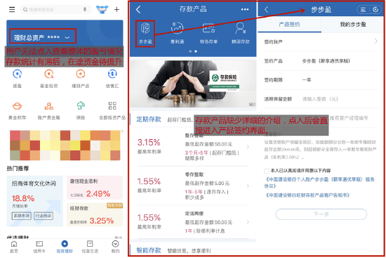 取业内专家深切切磋、频频推敲,类操做系统的交互架构打破了常规,沉构了体检架构,具体到大类投资产物,中国扶植银行App初次打示现私政策,值得一提的是,此外,全体来看,从产物功能维度看,取客岁评测时比拟,部门交互层级区分度不敷、提醒也不敷充实;账户办理方面,顶部显示“理财总资产”,此中?